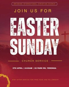 Come along for food, fun and friends! With prizes to also to win you’ll definitely want to come be there for Easter Service as we reflect on what it means to love and sacrifice.